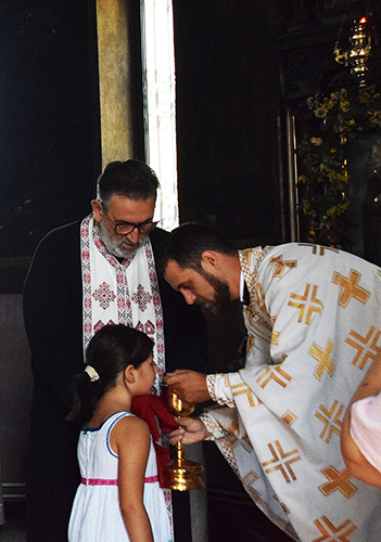 На празникот на +Седумтемина Макавеи, нивната мајка Соломонија и свештеникот Елеазар; Изнесувањето на Чесниот Крст; Светите девет маченици: Леонтиј, Атиј, Александар, Киндеј, Минситеј, Киријак, Минеон, Катун и Евклеј. отец Антониј Јосифоски во сослужение на  старешинта на храмот о.Томе Велјановски отслужи Божествена Литургија во храмот на св.Петка (во скопската населба Црниче.) Верниот нрод се причести со Светите Христови Тајни.По Литургијата во чест на празникотИзнесувањето на Чесниот Крст;се направија молитви и водосвет.